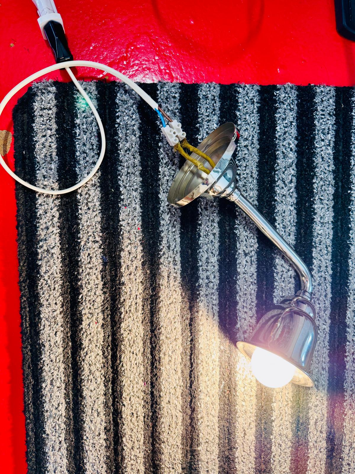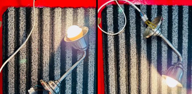 Diese beiden Auslegerleuchten sind in schönem Gebrauchtzustand mit normalen, dem Alter entsprechend, Abnutzungen (bald 100 Jahre alt) und sie funktionieren einwandfrei (siehe letzte zwei Bilder). Die eine wurde noch mit stoffüberzogenem Kabel versehen, sollte aus heutiger Sicht ersetzt werden. Und die andere hat am Rande des Schirms ein kleines fast unsichtbares nadelgrosses Loch. Wir wollten das nur auf höchstem Niveau erwähnt haben, denn Klarheit wird bei uns gross geschrieben.