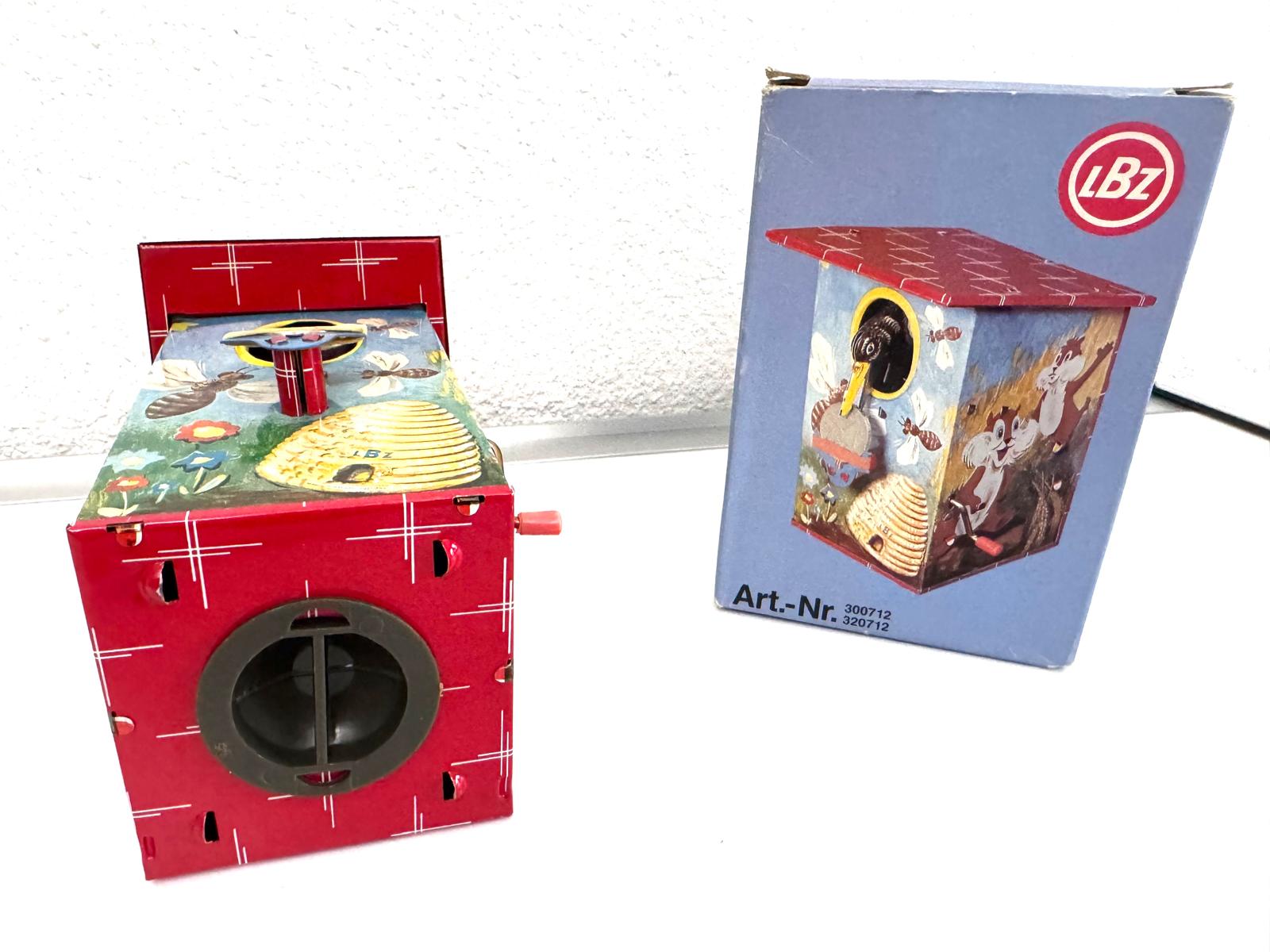 Das Blechspielzeug LBZ Vogelhaus aus den 60er/70er Jahren stammt aus Westdeutschland und ist ein Originalstück. Das Vogelhaus ist eine seltene und einzigartige Spielzeugart aus Blech.