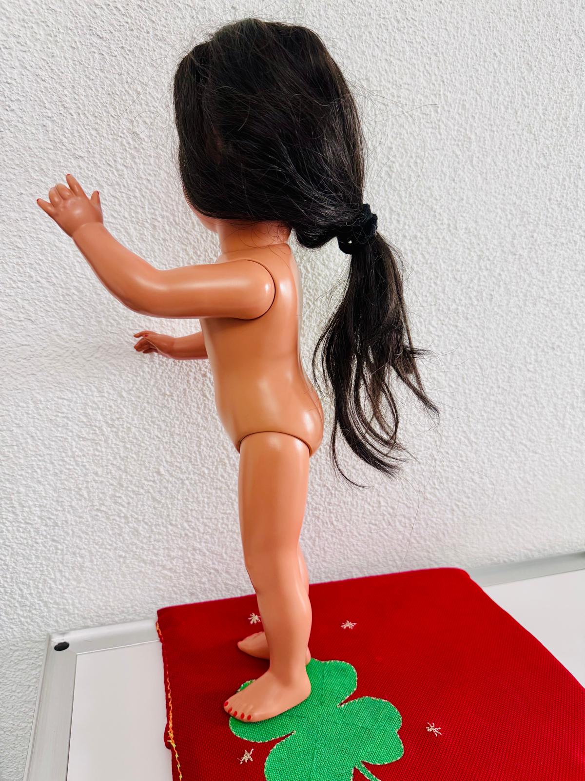 Manuela (Schildkröt): gemarkt, Gesamt-Körper ca 45cm, Stehpuppe, Tortulon, bewegliche Arme und Beine, Kurpelkopf, lange schwarze